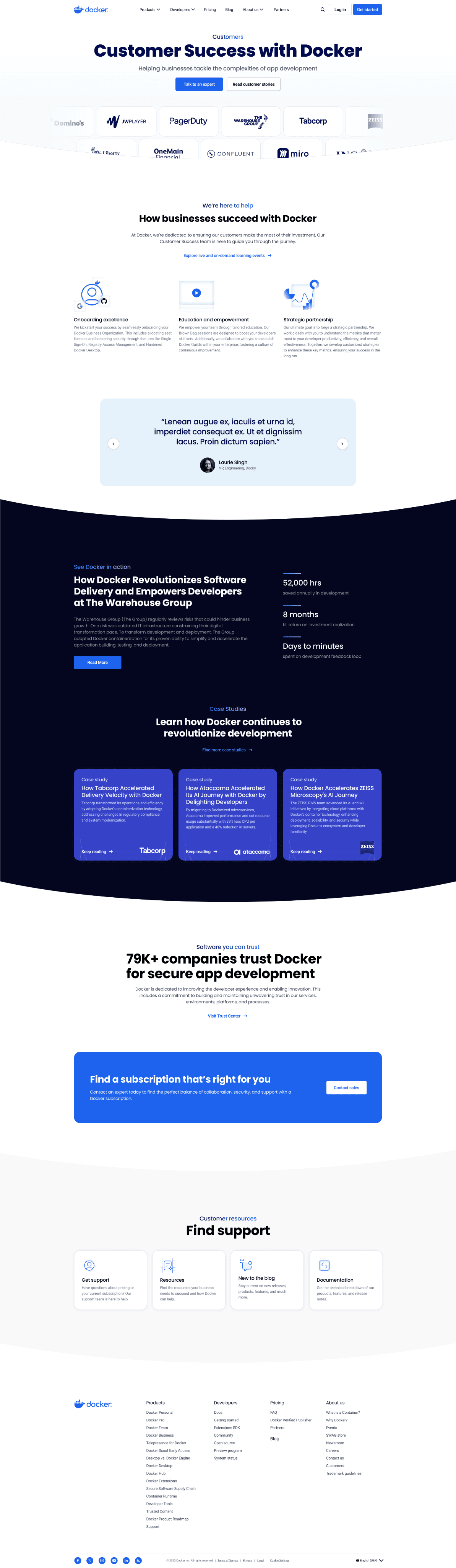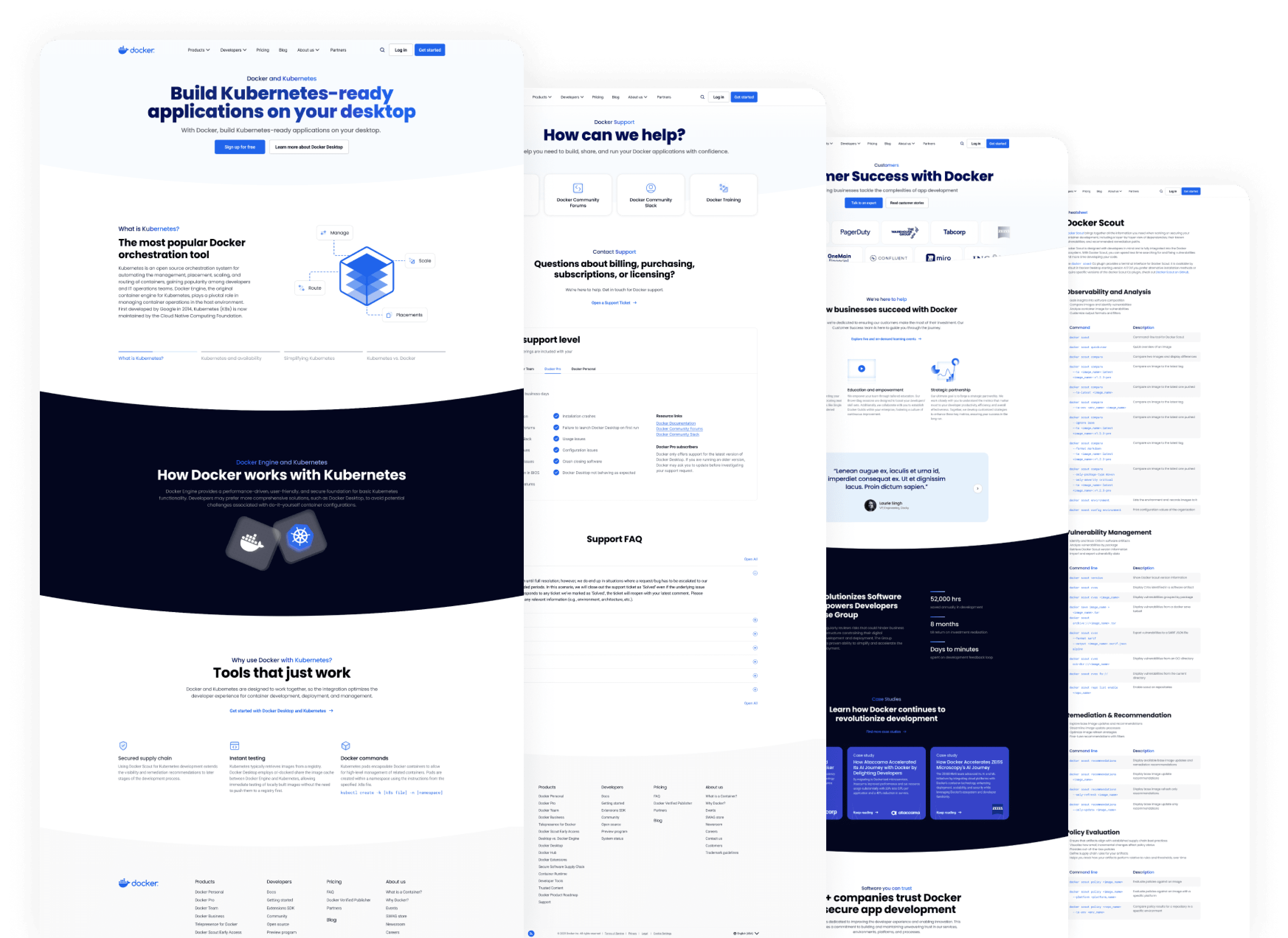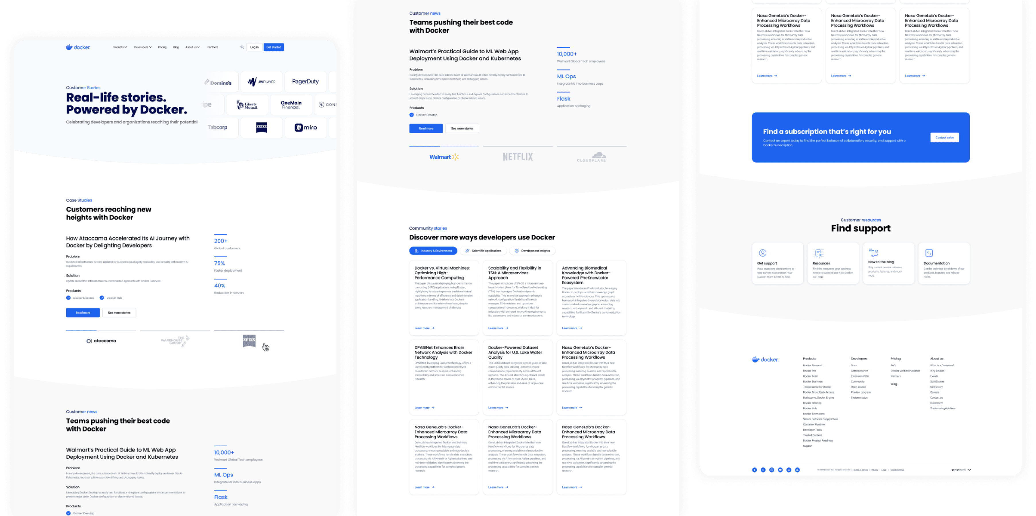The old layouts were also dense with paragraphs, unclear call to actions, and inconsistent tone and voice. This made it hard for users to digest content and quickly find what they're looking for, let alone understand Docker's fullest offerings.